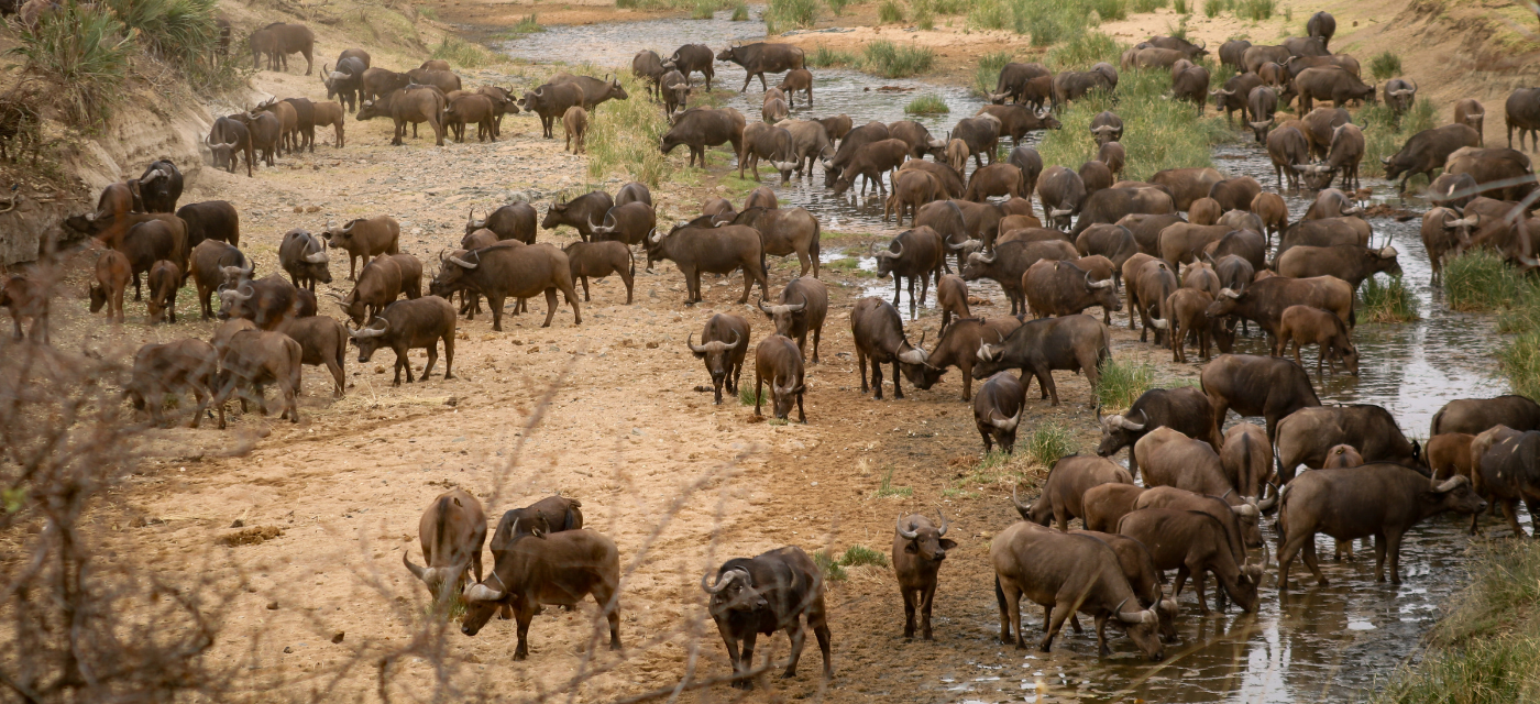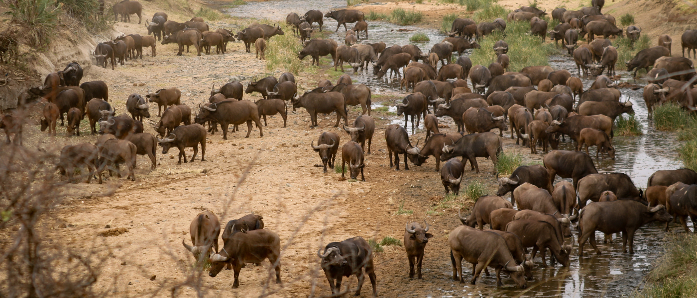Nairobi → drive through the Rift Valley → lodge check-in & lunch → afternoon game drive: rhino, flamingos, buffalo, waterbuck